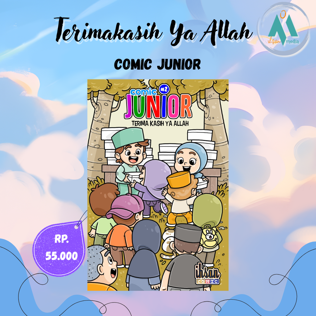 Karya Kreatif Anak-anak Berbakat Comic Junior “Karena itu, ingatlah kamu kepada-Ku niscaya Aku ingat (pula) kepadamu, dan bersyukurlah kepada-Ku, dan janganlah kamu mengingkari (nikmat)-Ku.” [QS. Al Baqarah : 152] Seri ke-2 Comic Junior bercerita tentang ungkapan rasa syukur kita kepada Allah. Ceritanya seruu, hikmahnya mendalam, dan pastinya banyak inspirasi kebaikan yang akan kita dapatkan. “Terima Kasih Ya Allah”