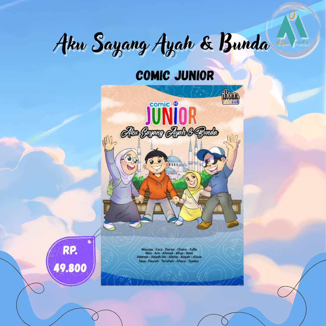Comic Junior 3 berisi 20 cerita dari Komikus Junior yang keren tentang bagaimana seorang anak mengekspresikan rasa sayangnya kepada ayah dan bunda. Seluruh gambar dan cerita dibuat oleh anak-anak Comic Junior yang usianya dibawah 15 tahun. MasyaAllah luar biasa anak-anak hebat ini. Dengan bakat menggambar yang dimiliki mereka telah ikut serta menyebarluaskan nilai-nilai kebaikan Islam melalui media buku komik, COMIC JUNIOR 3.